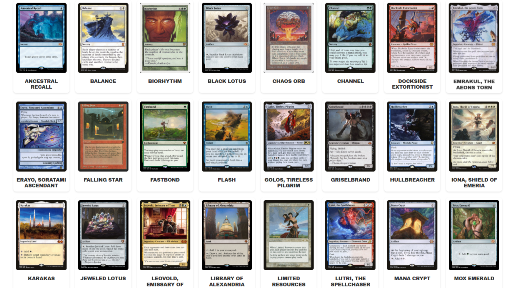 - Free counterspells, protection, stax pieces, and recursion make your wins stick.
